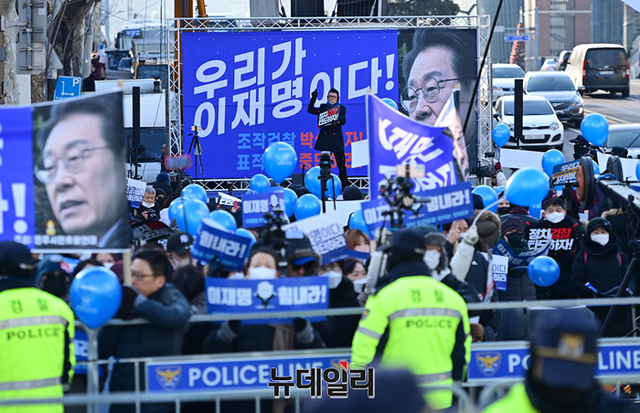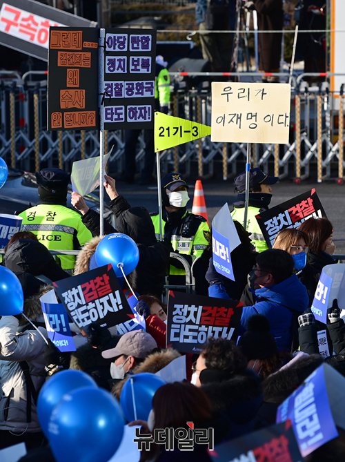 [포토] 검찰 앞에 모인 이재명 지지자 "우리가 이재명이다"