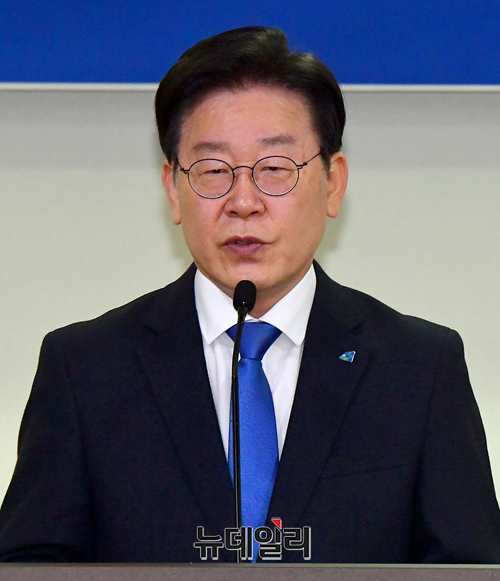 이재명 더불어민주당 대표가 31일 오전 국회 의원회관에서 열린 민생경제위기대책위·경제안보센터 부실·미분양 주택 매입임대 전환 긴급토론회에서 축사를 하고 있다.