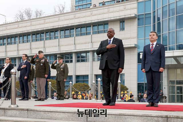 [포토] 국민의례하는 로이드 오스틴 미국 국방장관