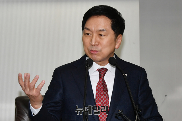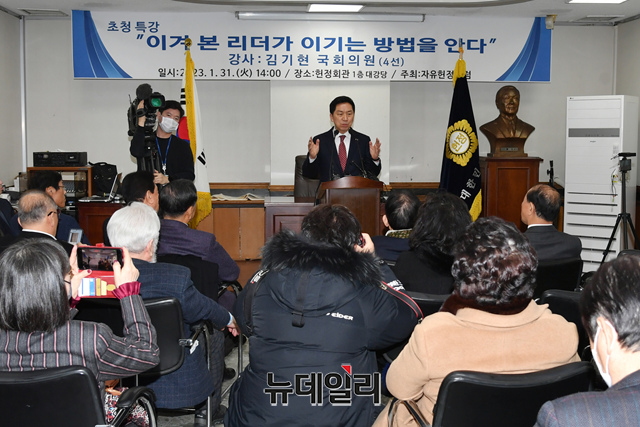 당권주자인 김기현 국민의힘 의원이 31일 오후 국회 헌정회관에서 자유헌정포럼에서 강연을 하고 있다.