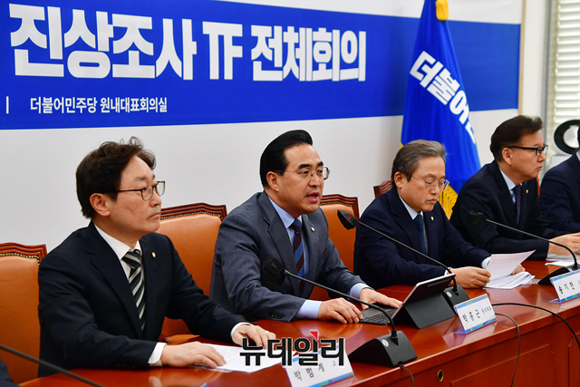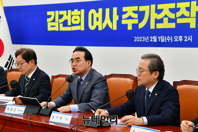 박홍근 더불어민주당 원내대표가 1일 오후 국회에서 열린 '김건희 여사 주가조작 진상조사TF 1차 전체회의'에 참석해 모두발언을 하고 있다.