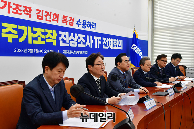 박범계 고문이 1일 오후 국회에서 열린 '김건희 여사 주가조작 진상조사TF 1차 전체회의'에 참석해 모두발언을 하고 있다.
