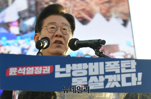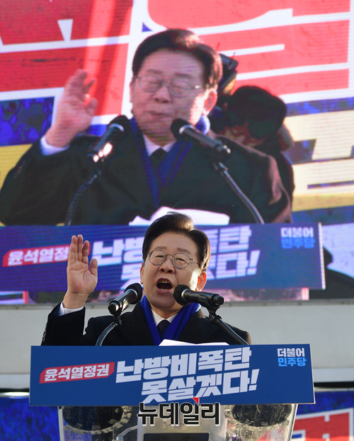 참석자들은 난방비 폭등과 정부 대응을 비판하고 이 대표에 대한 전방위적 검찰 수사를 규탄했다.