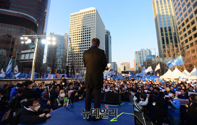 이날 현장에는 이 대표 및 박홍근 원내대표, 당 지도부, 친 이계 의원 및 경찰 추산 10만 명, 주최 측 추산 30만 명 지지자들이 모였다.