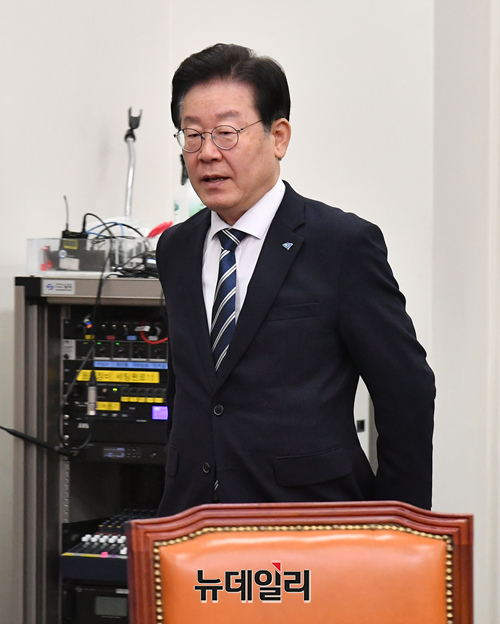 이재명 더불어민주당 대표와 박홍근 원내대표 및 지도부가 6일 오전 국회에서 열린 최고위원회의에 참석하고 있다.