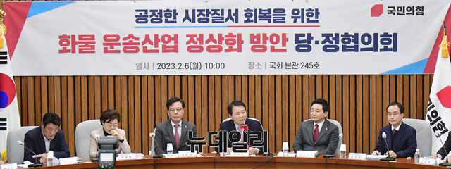 성일종 국민의힘 정책위의장이 6일 오전 국회에서 열린 화물 운송산업 정상화 방안 당·정협의회에서 모두발언을 하고 있다.