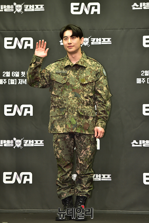 배우 차영남이 6일 오후 서울 마포구 스탠포트호텔에서 열린 ENA 예능 '신병캠프' 제작발표회에서 포즈를 취하고 있다.