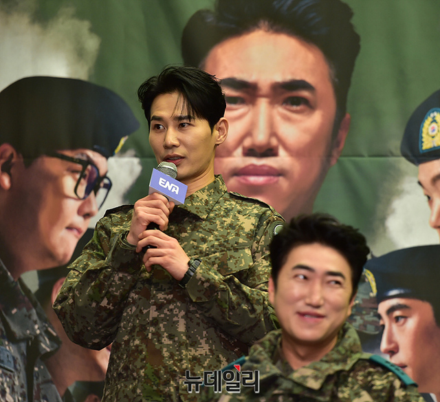 배우 이충구가 6일 오후 서울 마포구 스탠포트호텔에서 열린 ENA 예능 '신병캠프' 제작발표회에서 포즈를 취하고 있다.