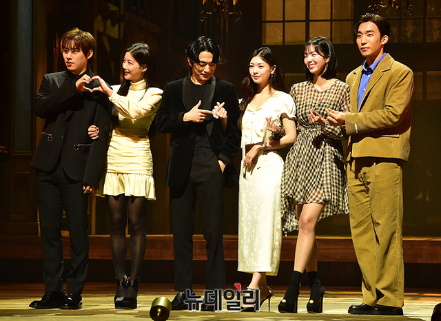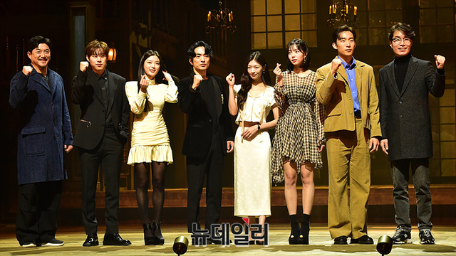 연극 '셰익스피어 인 러브' 배우들이 7일 오후 서울 서초구 예술의전당에서 열린 기자간담회에서 포토타임을 갖고 있다.