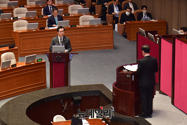 정황근 농림축산식품부 장관이 7일 오후 국회 본회장에서 열린 경제 분야 대정부질문에서 답변을 하고 있다.