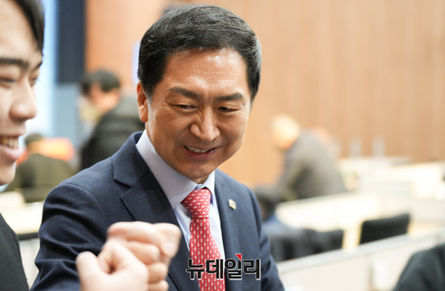 [포토] 청년보좌역들과 인사 나누는 김기현 후보
