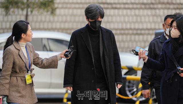 남욱 변호사가 8일 오후 서울 서초구 중앙지법에서 열린 대장동 개발 뇌물 혐의 관련 1심 선고 공판에 출석하고 있다.