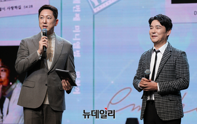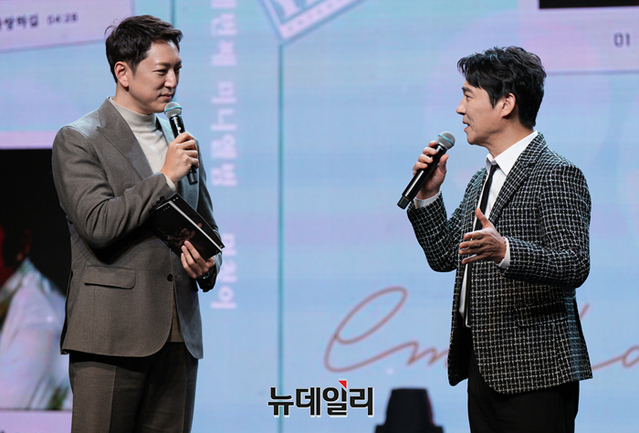 방송인 한석준이 8일 오후 서울 강남구 일지아트홀에서 열린 임창정 미니3집 '멍청이' 쇼케이스에서 인사말을 하고 있다. 음원은 오후 6시 공개.