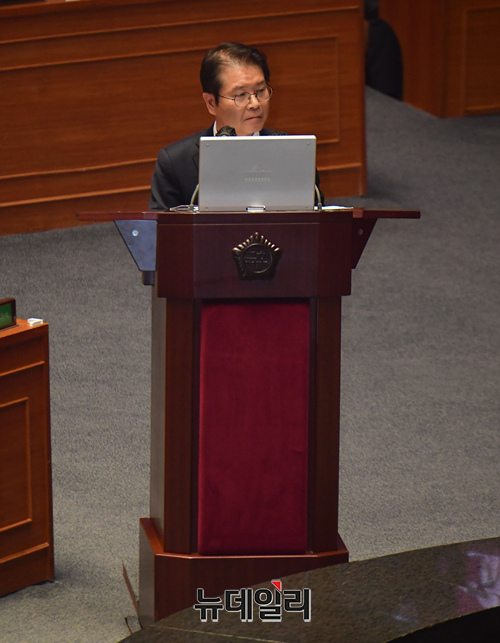 이정식 고용노동부 장관이 8일 오후 국회 본회의에서 열린 교육·사회·문화에 대한 대정부 질문에서 답하고 있다.