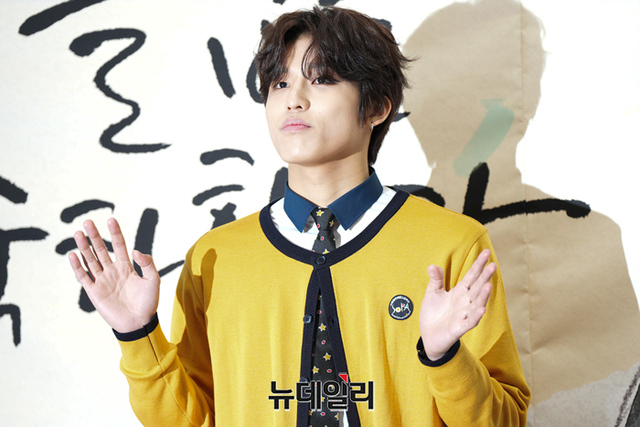 트레저 맴버 정우가 9일 오전 서울 구로구 서울공연예술고등학교에서 열린 졸업식에 참석해 포즈를 취하고 있다.