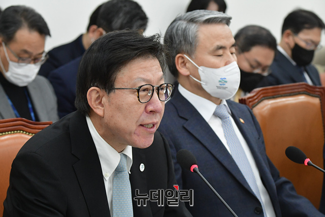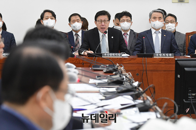 박형준 부산시장이 9일 오전 국회에서 열린 2030 부산세계박람회 유치지원 특별위원회 전체회의에 참석해 발언을 하고 있다.