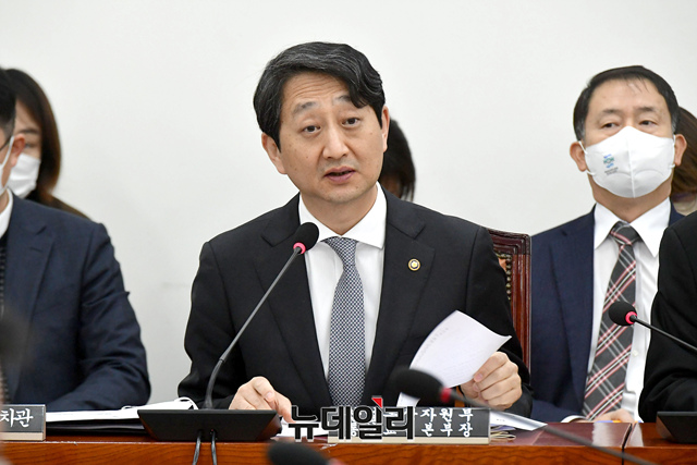안덕근 산업통상자원부 통상교섭본부장이 9일 오전 국회에서 열린 2030 부산세계박람회 유치지원 특별위원회 전체회의에 참석해 발언을 하고 있다.
