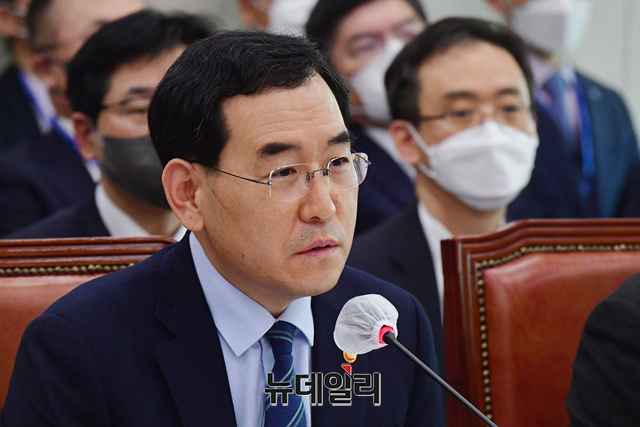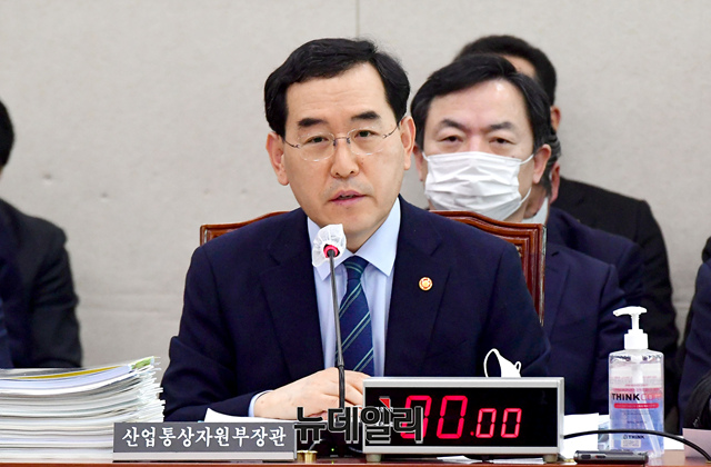 이창양 산업통상자원부 장관이 9일 오전 국회에서 열린 산업통상자원중소벤처기업위원회 전체회의에서 의원들의 질문에 답하고 있다.