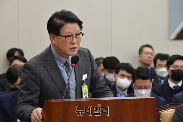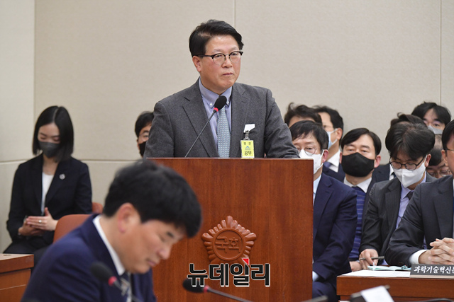 박형일 LG유플러스 부사장이 9일 오후 국회에서 열린 과학기술정보방송통신위원회 전체회의에서 의원들의 질문에 답하고 있다.