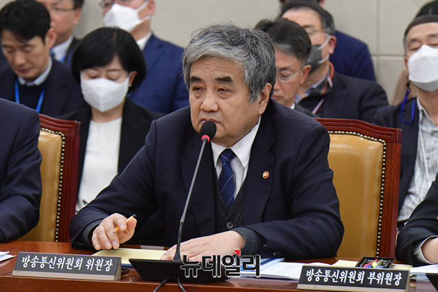이 9일 오후 국회에서 열린 과학기술정보방송통신위원회 전체회의에 출석해 의원들의 질문에 답하고 있다.