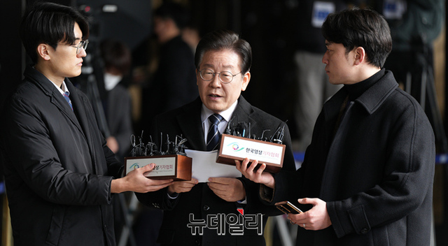 이재명 더불어민주당 대표가 10일 오전 서울 서초구 중앙지검에서 대장동·위례신도시 개발 비리의혹으로 조사를 받기 위해 출석해 준비한 입장문을 낭독하고 있다.