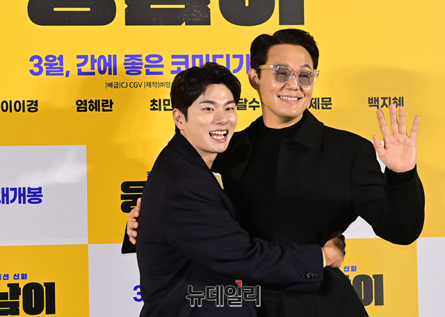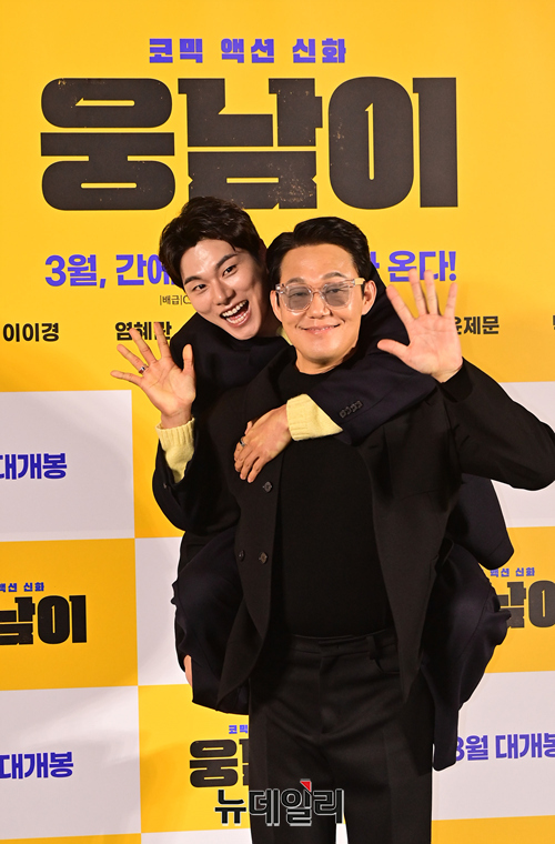 배우 박성웅, 이이경이 13일 오전 서울 CGV용산아이파크몰에서 열린 영화 '웅남이(감독 박성광)' 제작보고회에서 포토타임을 갖고 있다.