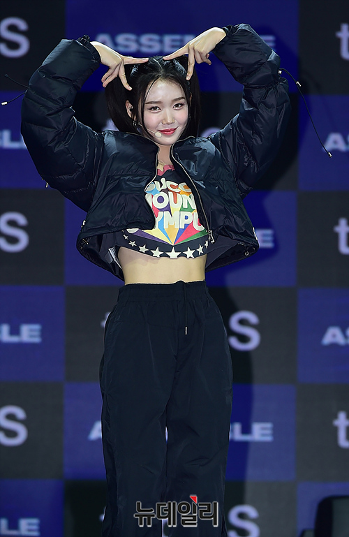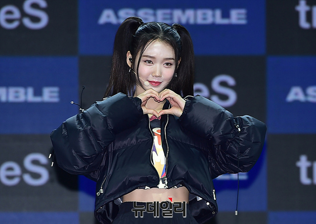 트리플에스 유빈이 13일 오후 서울 용산구 블루스퀘어 마스터카드홀에서 열린 '어셈블 라이징' 쇼케이스에서 포즈를 취하고 있다.