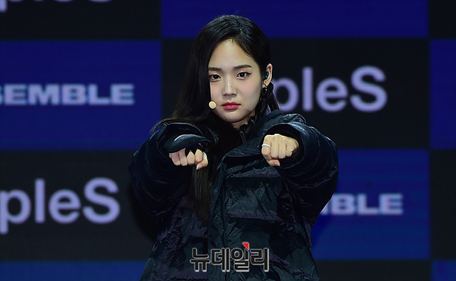 트리플에스 서연이 13일 오후 서울 용산구 블루스퀘어 마스터카드홀에서 열린 '어셈블 라이징' 쇼케이스에서 포즈를 취하고 있다.