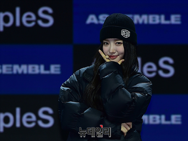 트리플에스 유연이 13일 오후 서울 용산구 블루스퀘어 마스터카드홀에서 열린 '어셈블 라이징' 쇼케이스에서 포즈를 취하고 있다.