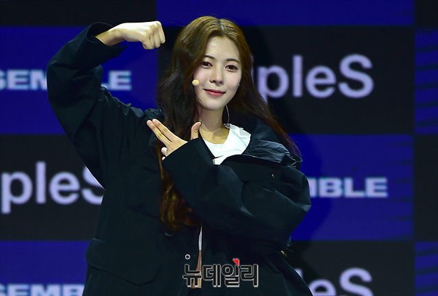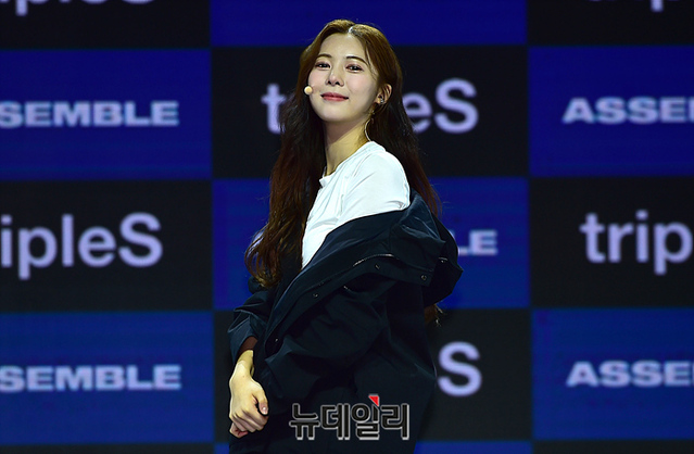 트리플에스 다현이 13일 오후 서울 용산구 블루스퀘어 마스터카드홀에서 열린 '어셈블 라이징' 쇼케이스에서 포즈를 취하고 있다.