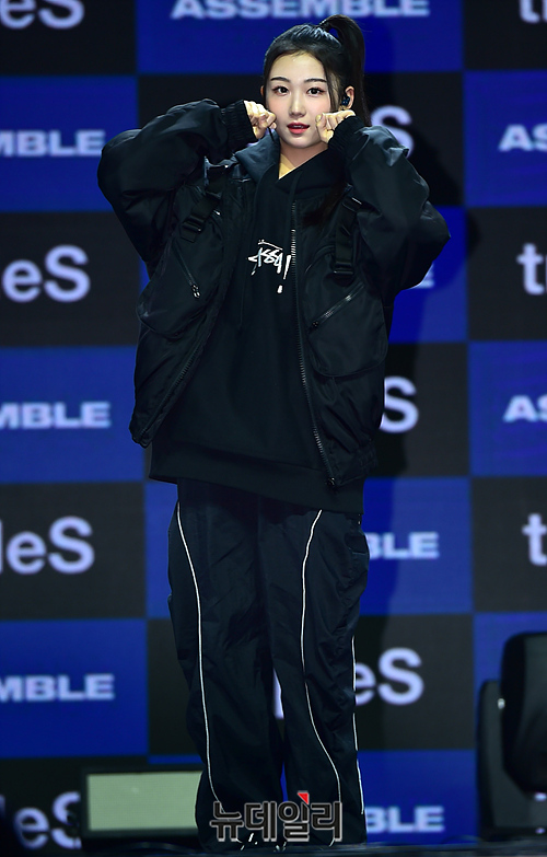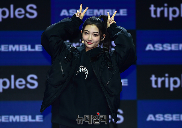 트리플에스 카에데가 13일 오후 서울 용산구 블루스퀘어 마스터카드홀에서 열린 '어셈블 라이징' 쇼케이스에서 포즈를 취하고 있다.