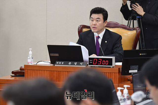 윤영석 국회 기획재정위원회 위원장이 14일 오전 국회에서 열린 기획재정위원회 전체회의에서 회의를 주재하고 있다.