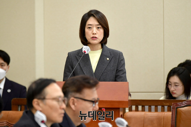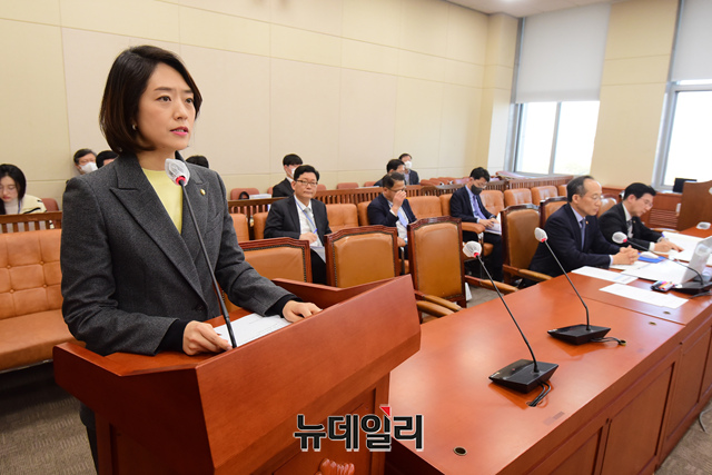 고민정 더불어민주당 의원이 14일 오전 국회에서 열린 기획재정위원회 전체회의에서 제안설명을 하고 있다.