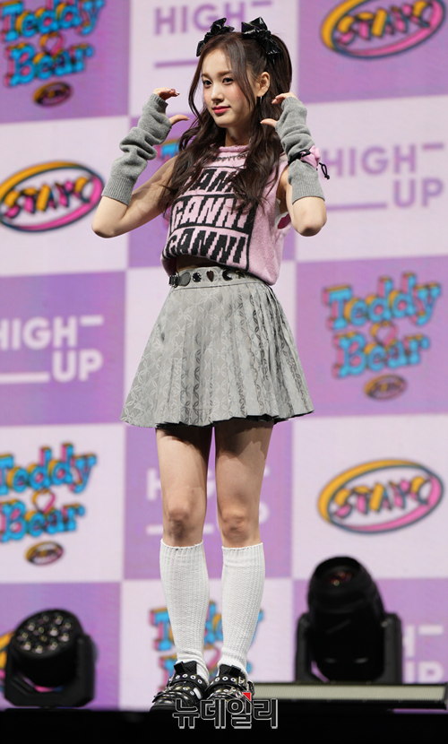 걸그룹 스테이씨(STAYC) 재이가 14일 오후 서울 광진구 예스24라이브홀에서 열린 싱글 앨범 'Teddy Bear' 발매 기념 쇼케이스에서 포토타임을 갖고있다.