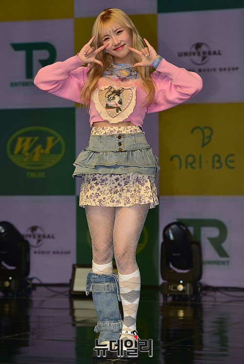 트라이비 지아가 14일 오후 서울 강남구 일지아트홀에서 열린 미니 앨범 2집 'W.A.Y' 컴백 쇼케이스에서 포즈를 취하고 있다.