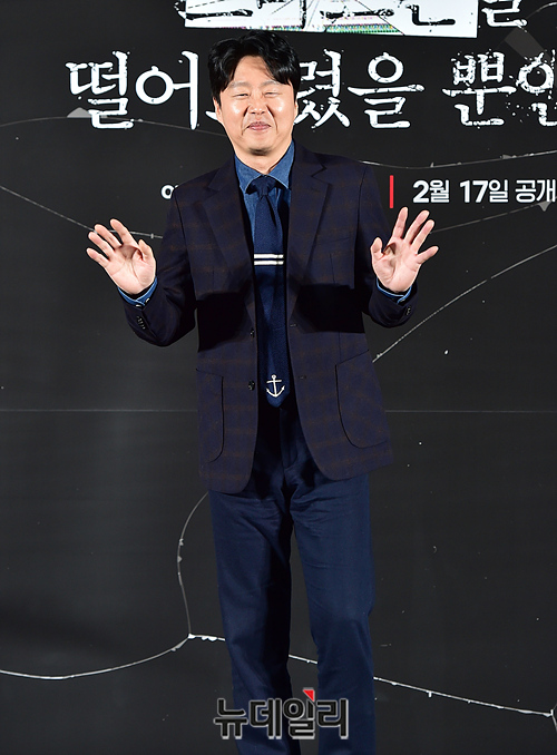 배우 김희원이 15일 오전 서울 광진구 롯데시네마 건대입구에서 열린 넷플릭스 '스마트폰을 떨어뜨렸을 뿐인데' 제작보고회에서 포즈를 취하고 있다.