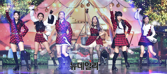 걸그룹 퍼플키스가 15일 오후 서울 광진구 건국대학교 새천년기념관에서 열린 미니 5집 'Cabin Fever(캐빈 피버)' 발매 기념 쇼케이스에서 수록곡 무대를 선보이고 있다.