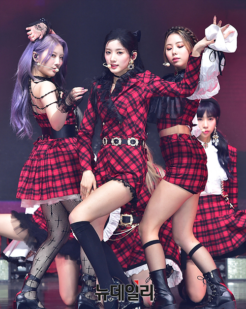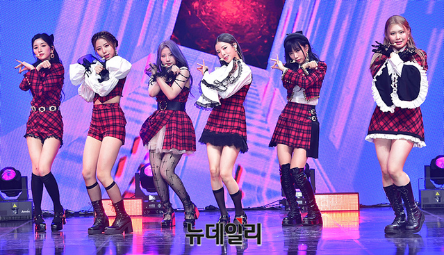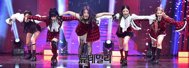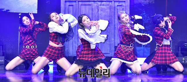 걸그룹 퍼플키스가 15일 오후 서울 광진구 건국대학교 새천년기념관에서 열린 미니 5집 'Cabin Fever' 발매 기념 미디어 쇼케이스에서 수록곡 무대를 선보이고 있다.