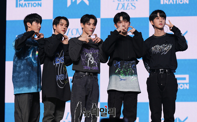 아이돌그룹 'TNX(티엔엑스)'가 15일 오후 서울 용산구 블루스퀘어에서 열린 두번째 미니앨범 'Love Never Dies' 쇼케이스에서 포토타임을 갖고있다.