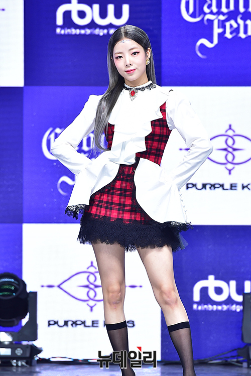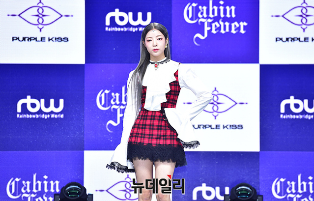 퍼플키스 나고은이 15일 오후 서울 광진구 건국대학교 새천년기념관에서 열린 미니 5집 'Cabin Fever' 발매 기념 미디어 쇼케이스에서 포즈를 취하고 있다.