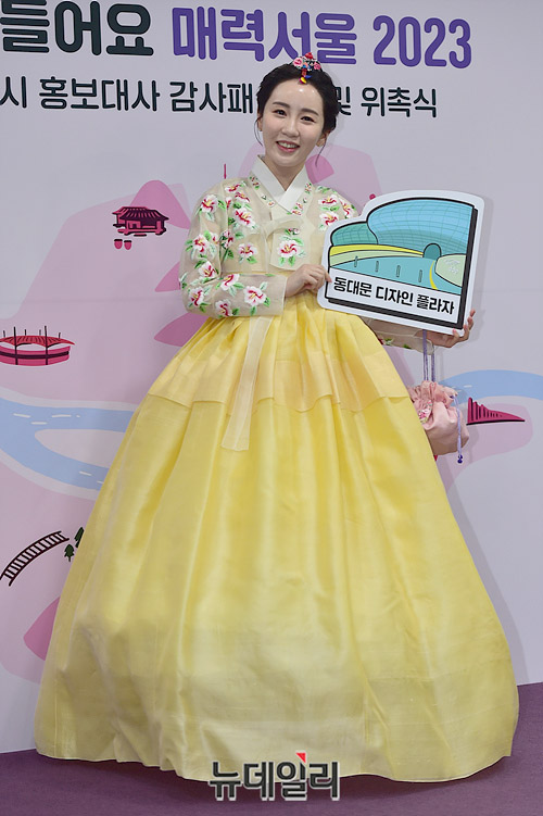 김현정 화가가 16일 오전 서울시청에서 열린 홍보대사 감사패 수여식에서 포즈를 취하고 있다.