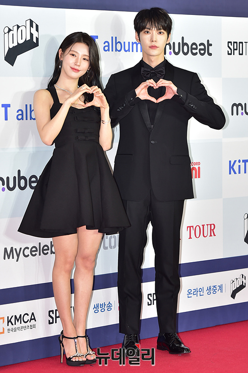 NCT 도영, (여자)아이들 미연이 18일 오후 서울 송파구 KSPO에서 열린 '써클차트 뮤직 어워즈' 에서 포즈를 취하고 있다.