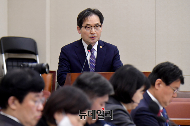 한기정 공정거래위원장 20일 오전 국회에서 열린 정무위원회 전체회의에 출석해 업무보고를 하고 있다.