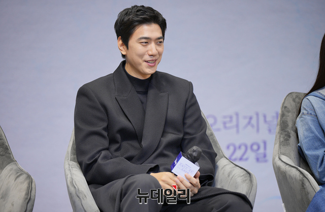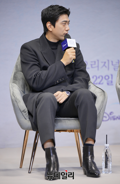 배우 성준이 21일 오전 서울 종로구 JW 메리어트 동대문 스퀘어 서울에서 열린 디즈니+ 웹드라마 '사랑이라 말해요' 제작발표회에서 인터뷰를 하고 있다.