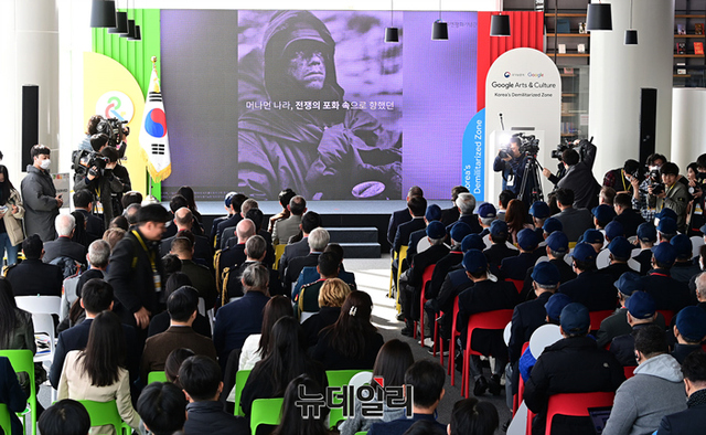 6.25전쟁 참전 용사들이 22일 오전 서울 용산구 전쟁기념관에서 열린 '어메이징 70, 구글 아트 앤 컬처 DMZ 글로벌 론칭·헌정 행사'에 참석해 자리하고 있다.이번 행사는 구글이 6.25전쟁 정전 70주년을 맞아 국가보훈처가 추진하는 연간 기념 사업의 첫번째 협력 프로그램이다.비영리 온라인 전시 플랫폼인 구글 아트앤 컬처의 '한국의 비무장지대' 온라인 전시다. 전시는 구글 아트 앤 컬처 사이트(goo.gle/koreadmz)를 방문하거나 공식앱을 통해 누구나 감상할 수 있다.