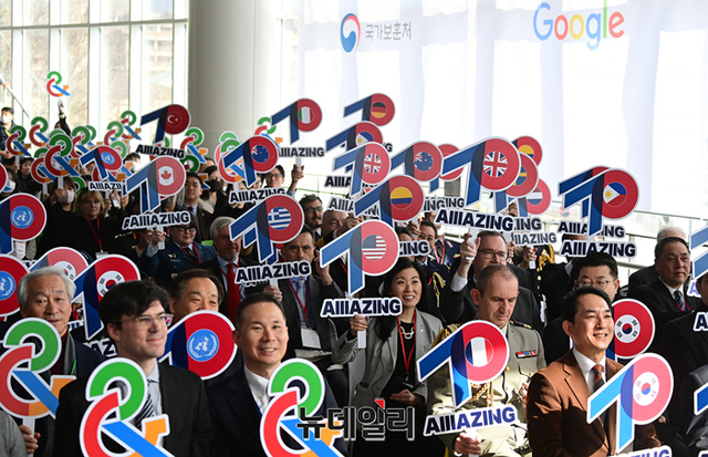 김경훈 구글코리아 사장과 사이먼 레인 시니어 프로그램 매니저가 22일 오전 서울 용산구 전쟁기념관에서 열린 '어메이징 70, 구글 아트 앤 컬처 DMZ 글로벌 론칭·헌정 행사'에 참석해 자리하고 있다.이번 행사는 구글이 6.25전쟁 정전 70주년을 맞아 국가보훈처가 추진하는 연간 기념 사업의 첫번째 협력 프로그램이다.비영리 온라인 전시 플랫폼인 구글 아트앤 컬처의 '한국의 비무장지대' 온라인 전시다. 전시는 구글 아트 앤 컬처 사이트(goo.gle/koreadmz)를 방문하거나 공식앱을 통해 누구나 감상할 수 있다.
