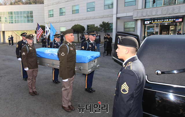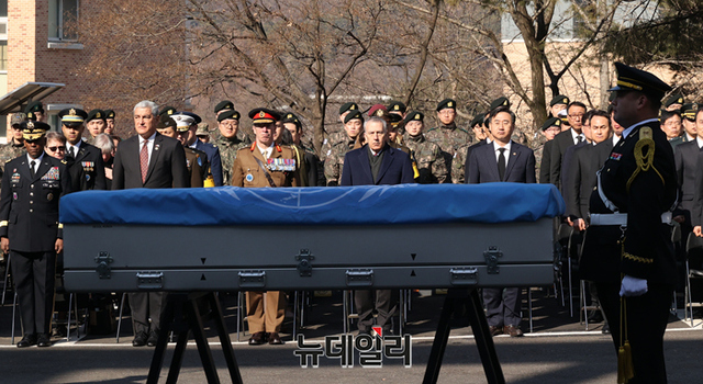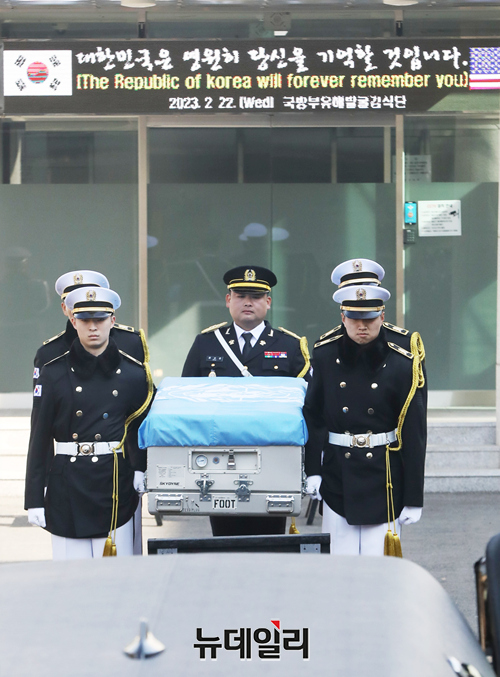 미군 6.25 전사자 유해 봉송식이 22일 오전 서울 동작구 국립서울현충원에서 거행되고 있다. (사진=공동취재단)