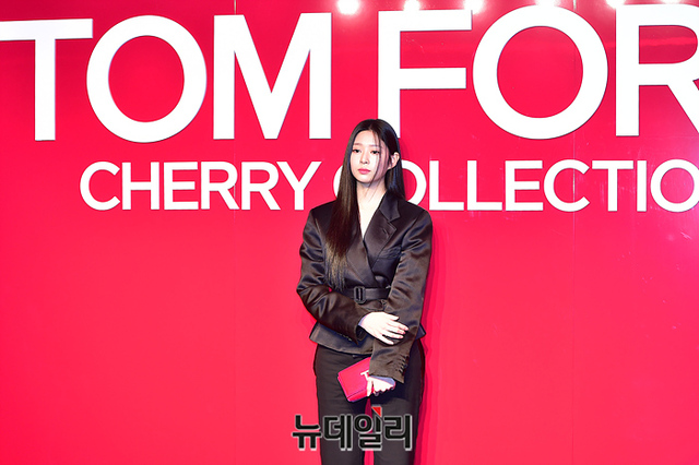 배우 김민주가 22일 오후 서울 성동구 성수S팩토리에서 열린 '톰 포드 체리 컬렉션' 아시아 퍼스픽 오프닝 행사에서 포즈를 취하고 있다.