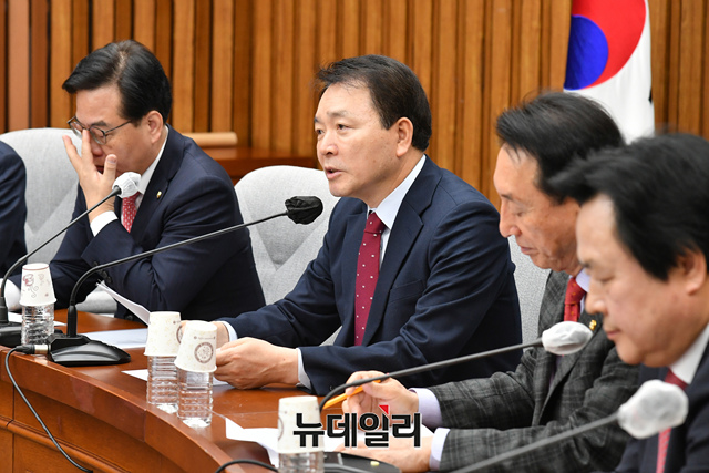 성일종 국민의힘 정책위의장이 24일 오전 국회에서 열린 원내대책회의에서 모두발언을 하고 있다.