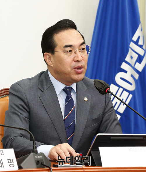 박홍근 더불어민주당 원내대표가 24일 오전 국회에서 열린 최고위원회의에서 모두발언을 하고 있다.